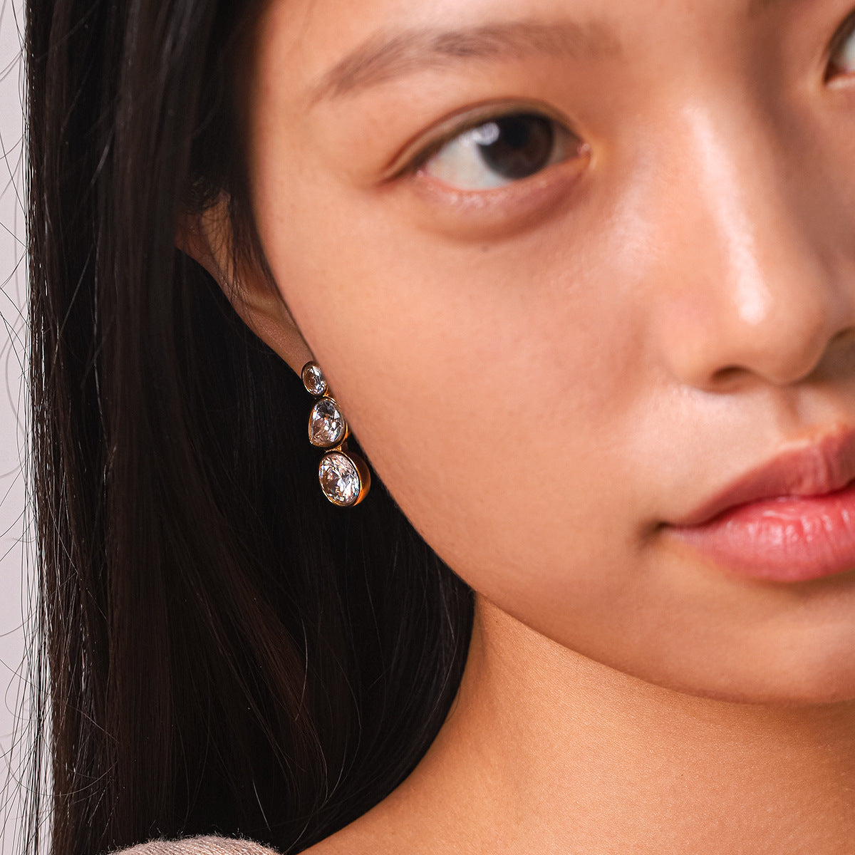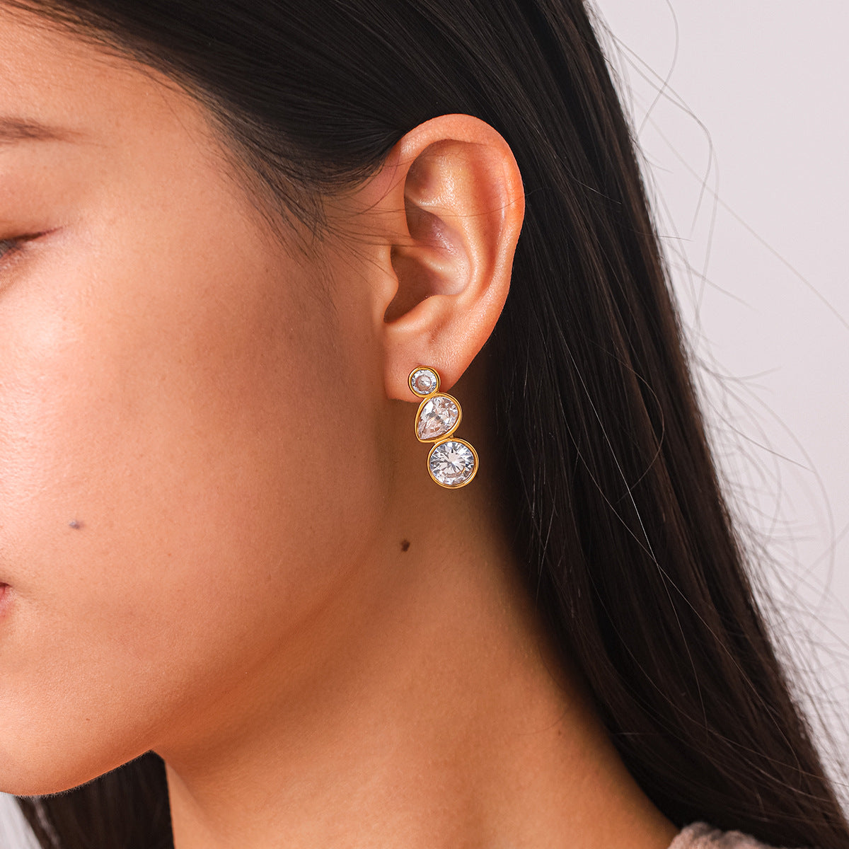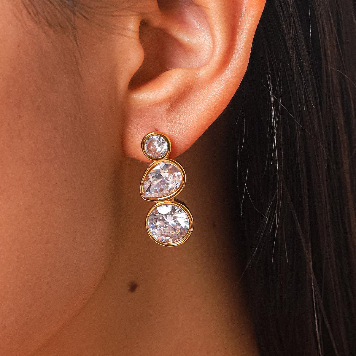 A trio of cubic zirconia stones in 18K gold-plated stainless steel, designed to bring dimension.